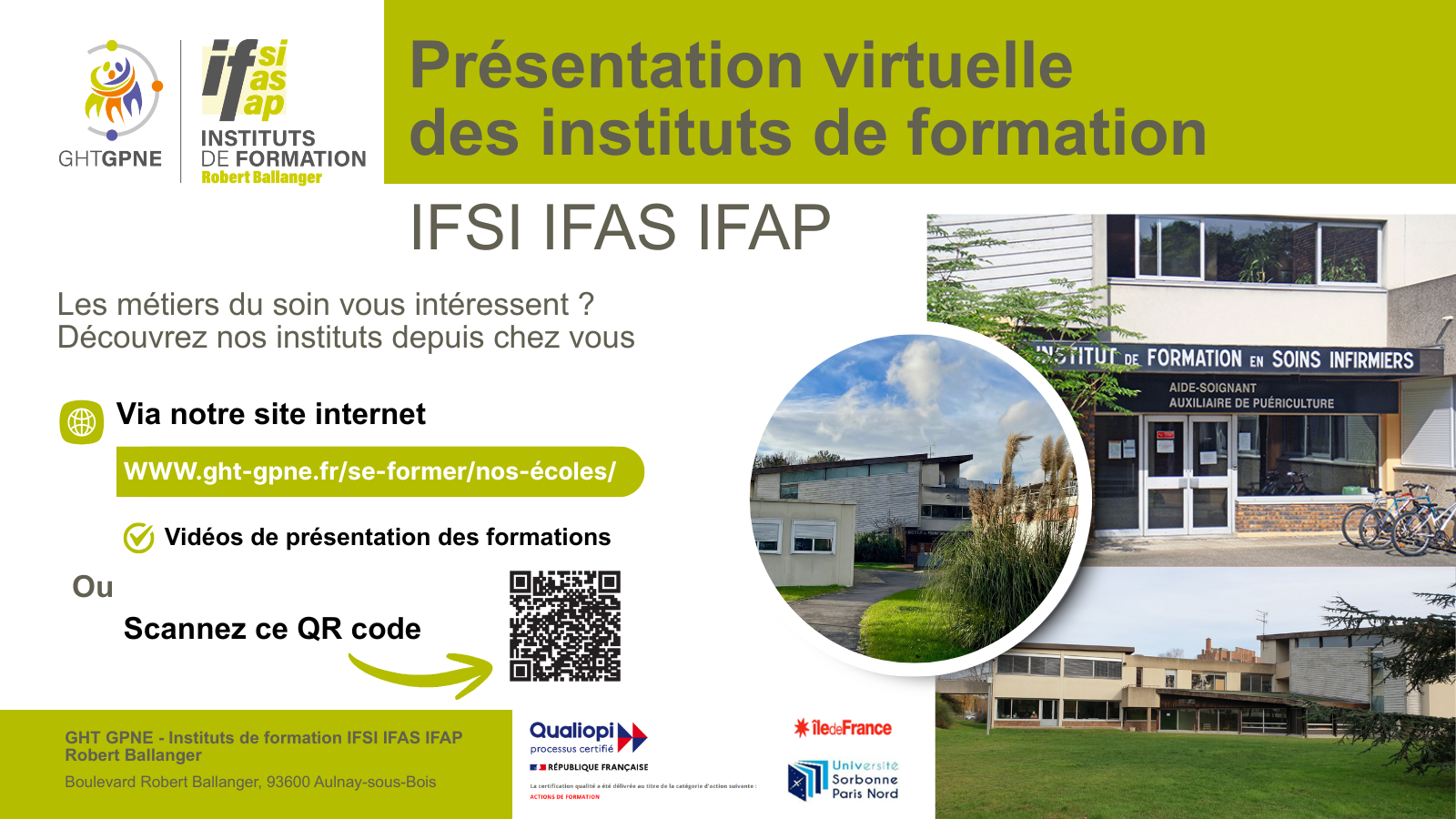 Découvrez les instituts de formation IFSI, IFAS et IFAP Robert Ballanger en visite virtuelle.