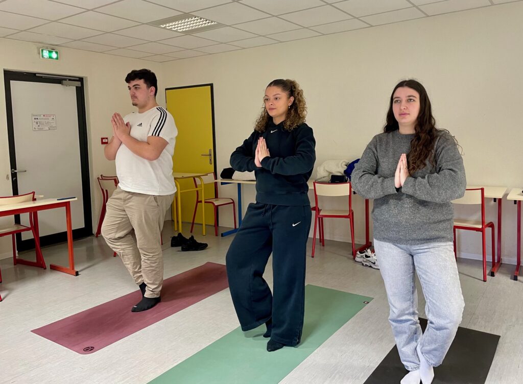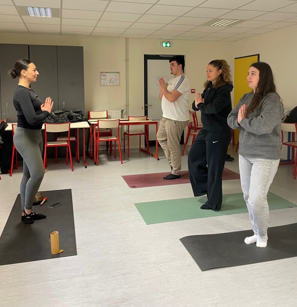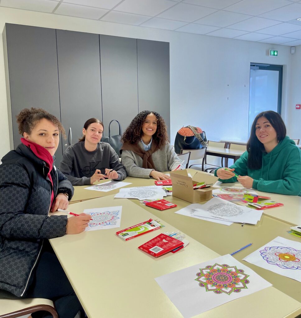 Vendredi 6 février 2026, les étudiants infirmiers et le personnel des instituts de formation Robert Ballanger – GHT GPNE ont bénéficié d’une journée bien-être avec une sophrologue et une instructrice de yoga. Les étudiants ont pu s’initier à la création de mandalas avec Marie-Noëlle Cheron (IBODE). Cette pratique facilite la concentration, réduit le stress et favorise le bien-être. Ils ont également participé à des séances de relaxation animées par Sarah Blin (CSS) qui les a guidés à travers des exercices de respiration, sur fond de musique douce, favorisant le relâchement du corps et de l’esprit.